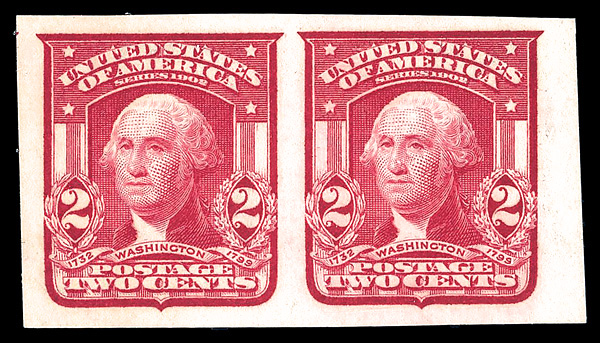 6027 nh 320 image1906, 2¢ carmine, type I, imperf. (Scott 320), pair, o.g., never hinged, Very Fine to Extremely Fine.