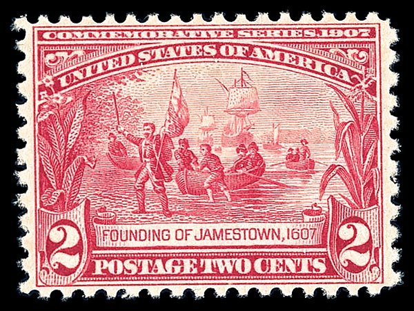6031 nh 329 image1907, 2¢ Jamestown (Scott 329), o.g., never hinged, Fine to Very Fine.