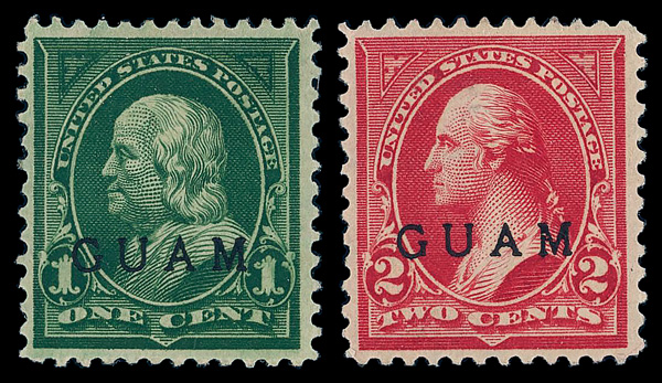 6466 og 1-2 image1899, 1¢ Franklin, deep green & 2¢ Washington, red (Scott 1-2), o.g., heavy hinge remnants, Very Fine.