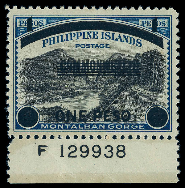 6480 nh N7 imageOccupation, 1943, 1p on 4p blue & black (Scott N7), plate number single, o.g., never hinged, Very Fine.