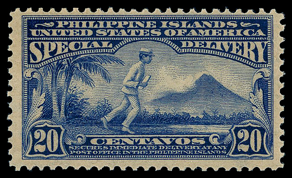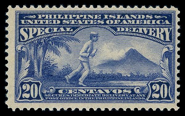 6475 nh E2 imageSpecial Delivery, 1906, 20c ultramarine (Scott E2), o.g., never hinged, Fine to Very Fine.