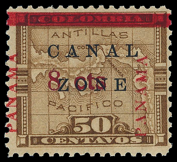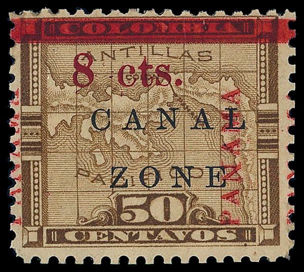 6447 og 18 image1905, 8¢ on 50c Map, bister brown (Scott 18), o.g., lightly hinged, Fine to Very Fine.