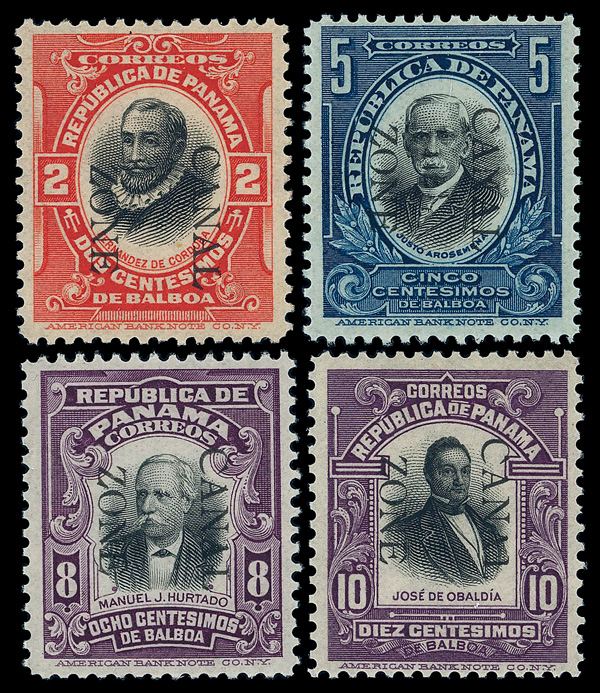 6451 nh 31-35 image1909-10, American Bank Note Co. issue, type I overprints, 1c to 10c complete (Scott 31-35), o.g., never hinged (8c LH), Very Fine.