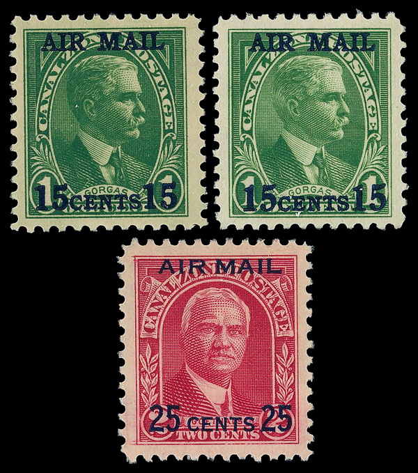 6463 nh C1-C3 image1929-31, 15c-25c surcharges, 'AIR MAIL' overprint, complete (Scott C1-C3), set of 3, o.g., never hinged (#C3 LH), Extremely Fine to Superb.