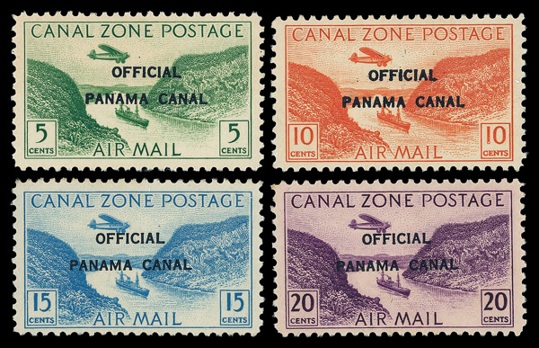 6464 nh CO1-CO7 imageAirmail Officials, 1941-42, 5¢ to $1 complete, overprint type I (Scott CO1-CO7), set of 7, o.g., never hinged, Very Fine.