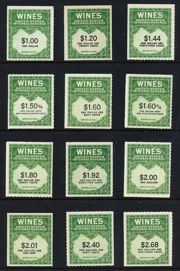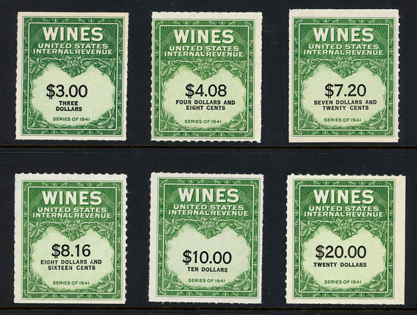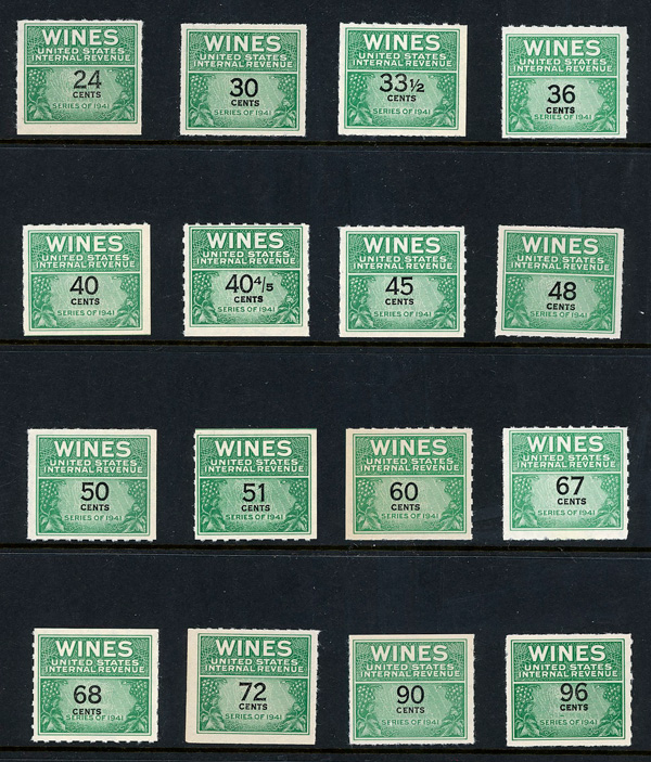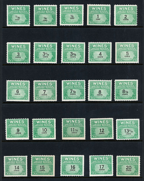 6218 ng RE108//RE203 imageWine Stamps, 1942-54, 1/5¢-$20.00 (Scott RE108//RE203), selection of 59 different, without gum as issued, Fine to Very Fine.
