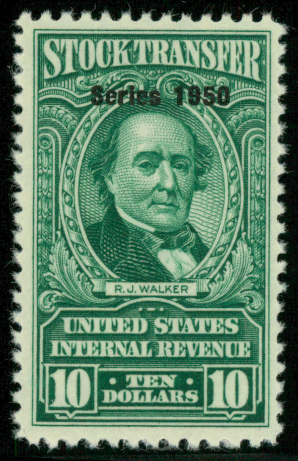6215 ng RD328 imageStock Transfer, 1950, $10 Walker (Scott RD328), unused without gum, Very Fine.