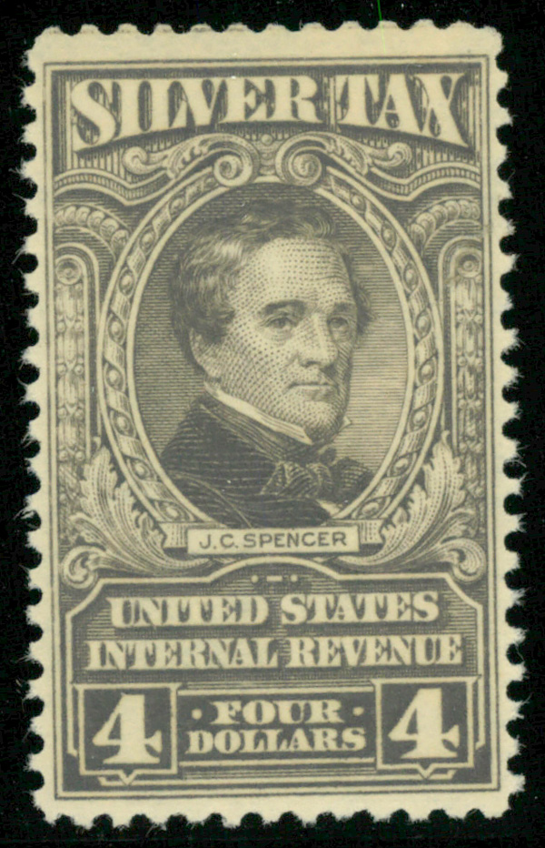 6219 og RG123 imageSilver Tax, 1944, $4 gray (Scott RG123), o.g., very lightly hinged, Fine.