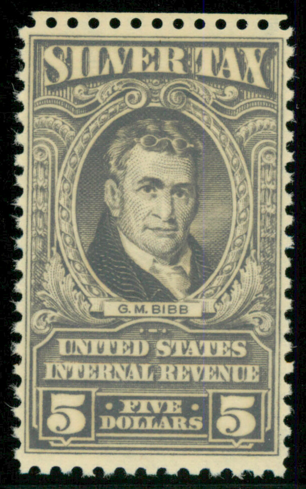 6221 nh RG124 imageSilver Tax, 1944, $5 gray (Scott RG124), o.g., never hinged, Fine.
