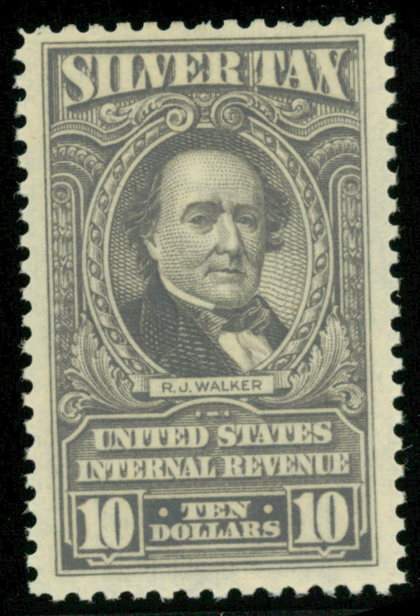 6222 nh RG125 imageSilver Tax, 1944, $10 gray (Scott RG125), o.g., never hinged, Very Fine.