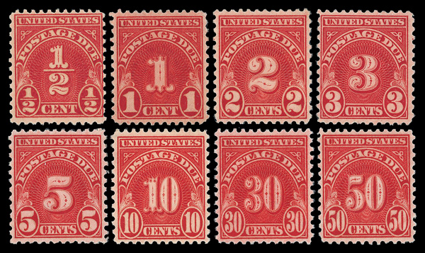 6202 nh J79-J86 image1931-56, ½¢ to 50¢, rotary press printing (Scott J79-J86), o.g., never hinged (30¢ & 50¢ LH), Fine to Very Fine.