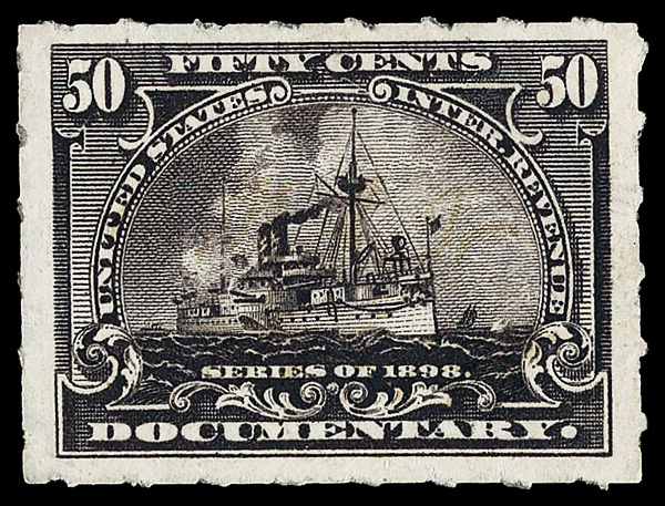 6213 og R171 imageDocumentary, 1898, 50¢ Battleship, rouletted (Scott R171), o.g., hinged, Very Fine to Extremely Fine, with 2025 P.F. certificate.