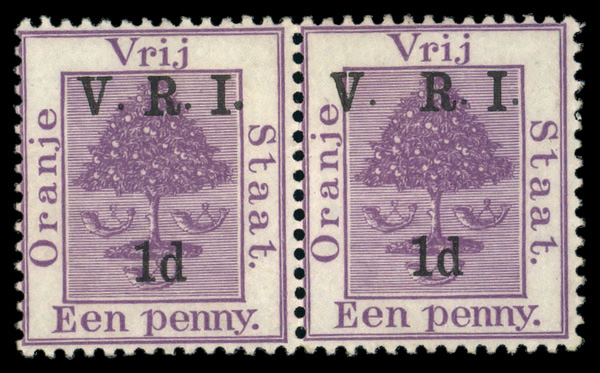 7465 og 45 var. image1900, 1d on 1d Orange Tree, pair, one with wide space between 'V' & 'R' (Scott 45 var.), o.g., hinge remnants, Very Fine.