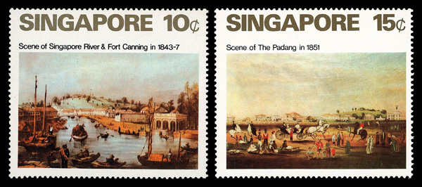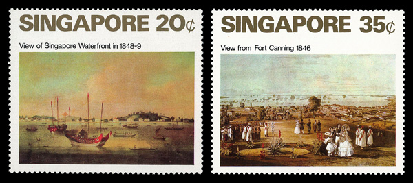 7470 nh 144-149 image1971, 19th Century Art Works of Views of Singapore complete (Scott 144-149), complete set of singles, o.g., never hinged, Fine to Very Fine.