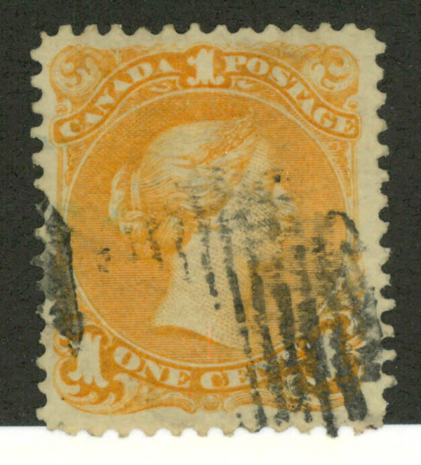 7480 O 23 image1868, Large Queen, 1¢ yellow orange (Scott 23), single, Fine to Very Fine.