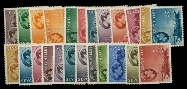 7472 og 110-126 image1938-48, King George VI, ½d to £1 complete (Scott 110-126), o.g., lightly hinged, Very Fine.