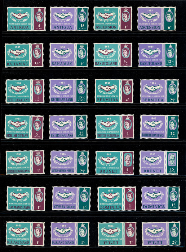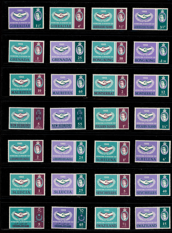7474 nh 1965 image1965, International Cooperation Year, Omnibus Issue, set of 61, without British New Hebrides, o.g., never hinged, Very Fine.