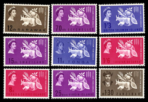 7473 nh 1963 image1963, Freedom From Hunger Omnibus Issue, complete, set of 37, o.g., never hinged, Very Fine.