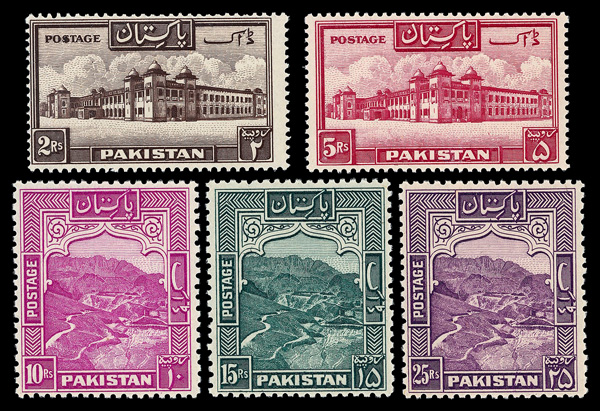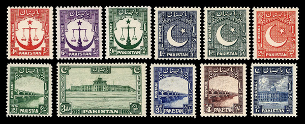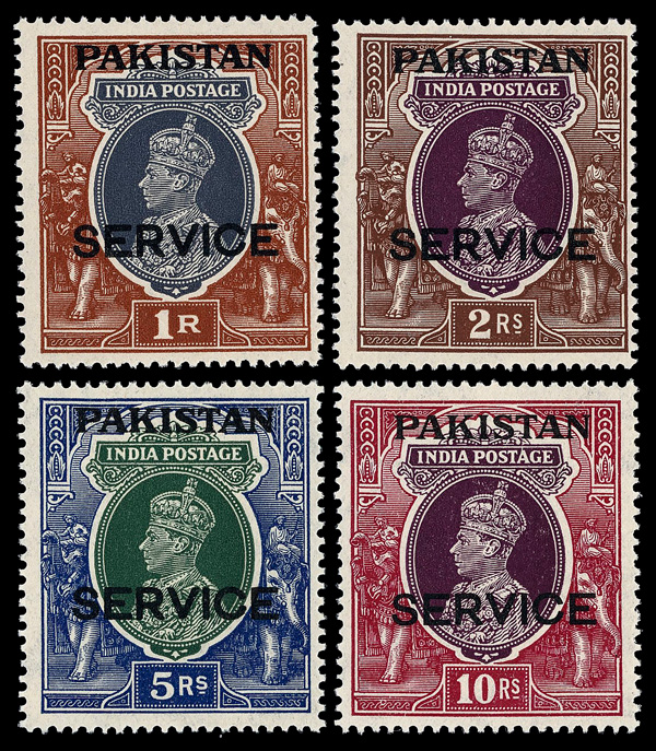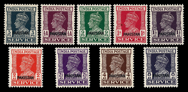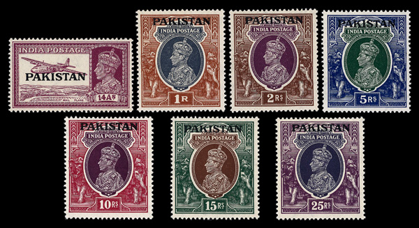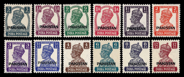 7466 og 1-19 image1947, India 3p-25r King George VI, 'PAKISTAN' overprint (Scott 1-19), set of 19, o.g., lightly hinged, Very Fine.