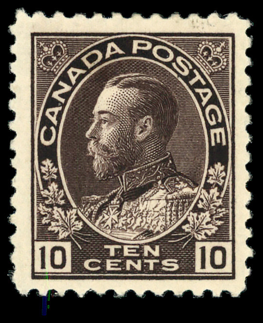 7518 og 118 image1925, King George V "Admiral", 10¢ bister brown (Scott 118), o.g., lightly hinged, Very Fine.