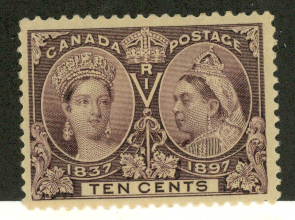 7488 og 57 image1897, Queen Victoria Jubilee, 10¢ brown violet (Scott 57), single, o.g., hinged, Fine to Very Fine.