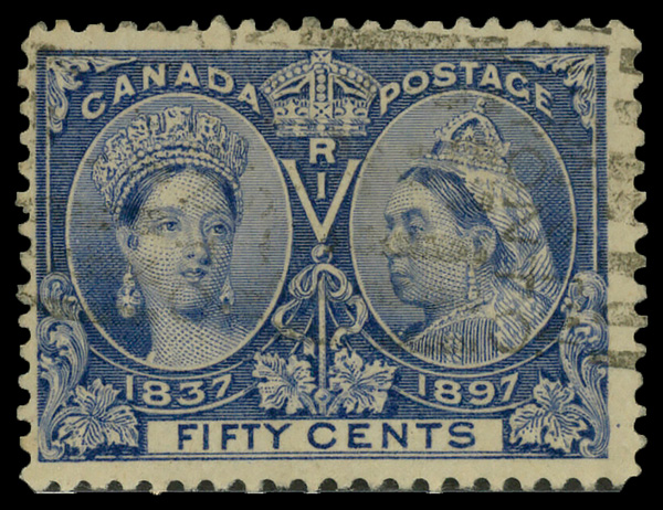 7489 O 60 image1897, Queen Victoria Jubilee, 50¢ ultramarine (Scott 60), single, o.g., hinged, Fine to Very Fine.