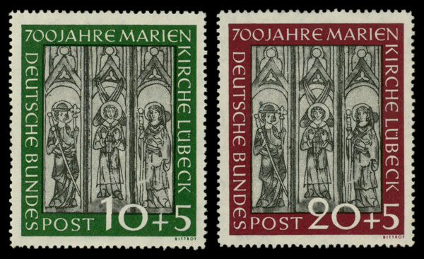 7736 nh B316-B317 image1951 Marienkirche complete (Scott B316-B317), o.g., never hinged, Extremely Fine.
