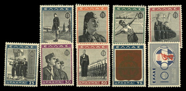 7747 og 428-436 image1940, Greek Youth Organization complete, regular issues (Scott 428-436), set of 9, singles, o.g., hinged, Fine to Very Fine.