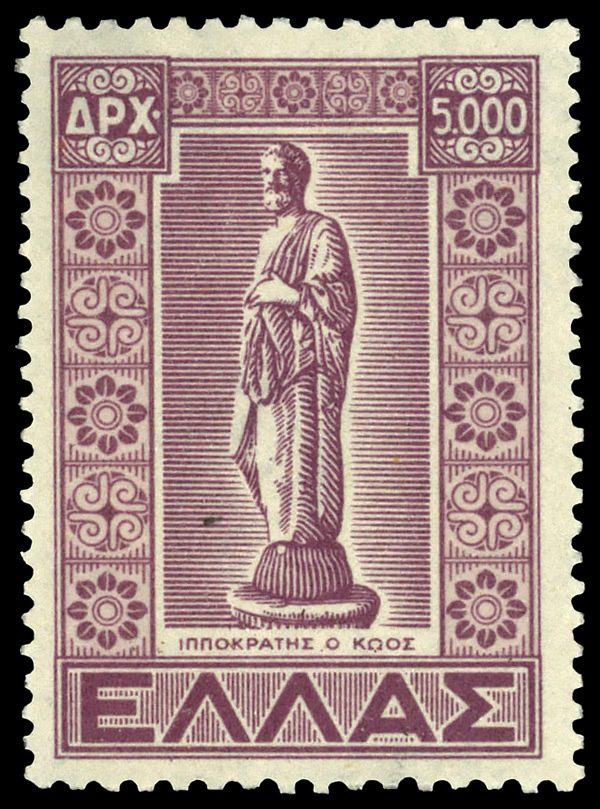7749 nh 521 image1950, 5,000d Statue of Hippocrates (Scott 521), single, o.g., never hinged, Fine to Very Fine.
