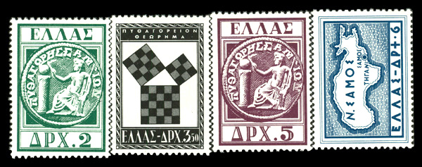 7757 nh 582-585 image1955, Pythagoras of Samos complete (Scott 582-585), set of 4, complete set of singles, o.g., never hinged, Fine to Very Fine.