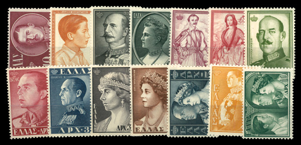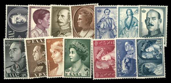 7758 nh 587-600 image1956, Royal Family complete (Scott 587-600), set of 14, complete set of singles, o.g., never hinged, Fine to Very Fine.
