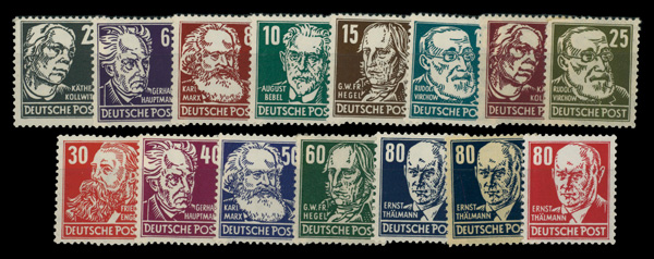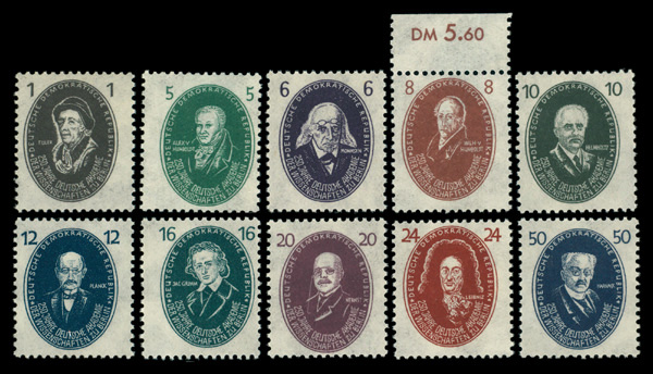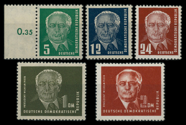 7739 nh 113-117 image1952-53, 5pf-2m Pieck definitives complete (Scott 113-117), complete set of singles, o.g., never hinged, Fine to Very Fine.