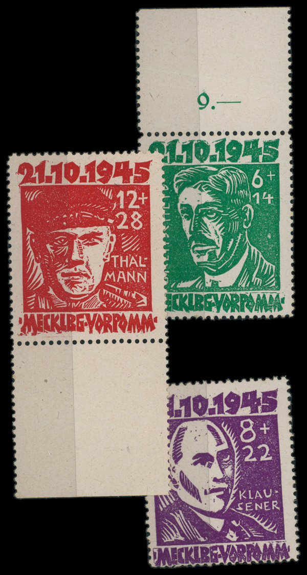 7743 nh 12NB1-12NB3 image1945, German Socialists complete (Scott 12NB1-12NB3), complete set of singles, o.g., never hinged, Fine to Very Fine.