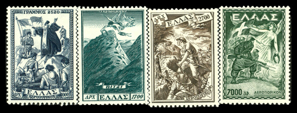 7764 nh C67-C70 imageAirmail, 1952, Army's Struggle Against the Communist Rebellion complete (Scott C67-C70), set of 4, complete set of singles, o.g., never hinged, Fine to Very Fine.