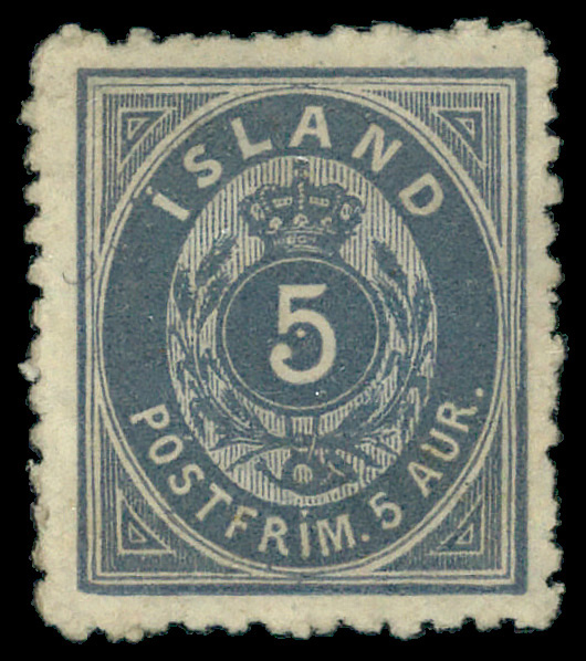 7796 og/ng 8 image1876, Crowned Numeral, 5a blue, perf 12½ (Scott 8), single, without gum, Fine, short perforation acroo top.