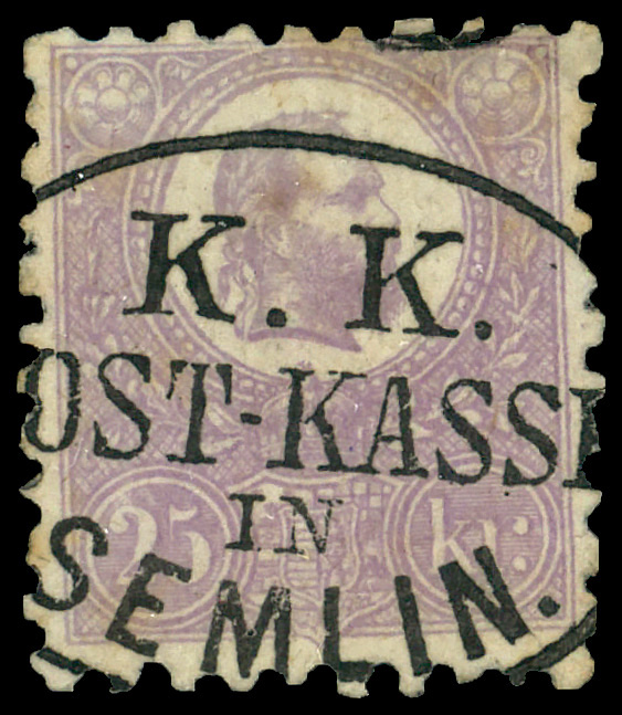 7770 O 6 image1871, Franz Josef I, 25k violet (Scott 6), single, Fine to Very Fine.
