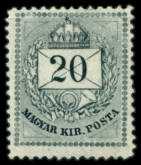7771 nh 17 image1874-1876, Crown of Saint Stephen, 20k greenish gray (Scott 17), single, o.g., never hinged, Fine to Very Fine.