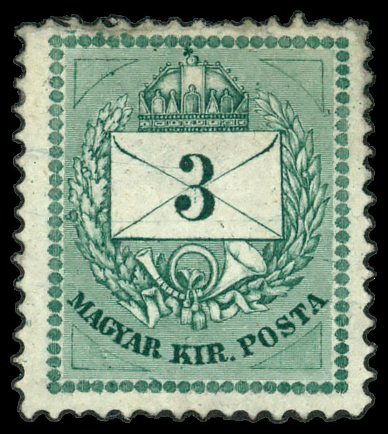 7773 og 19b image1881, Crown of Saint Stephen, 3k blue green (Scott 19b), single, o.g., hinged, Fine to Very Fine.
