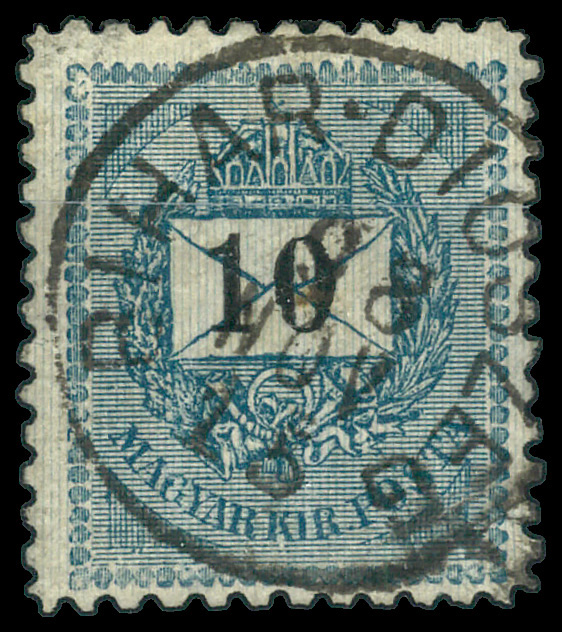 7774 O 27i image1888-1898, Crown of Saint Stephen, 10k blue values in black (Scott 27i), single, Fine to Very Fine.