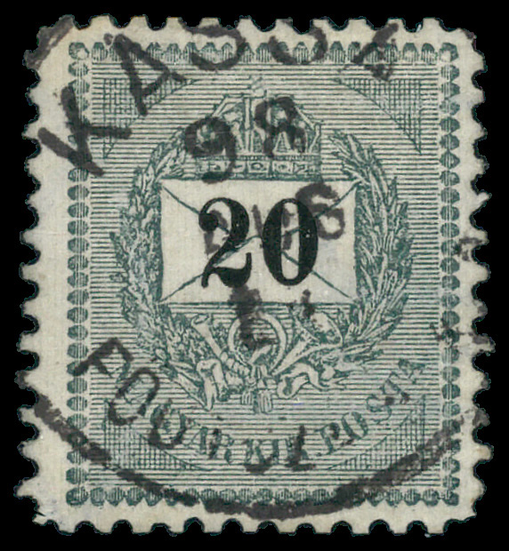 7775 O 30i image1888-1898, Crown of Saint Stephen, 20k Gray, value in black (Scott 30i), single, Very Fine.