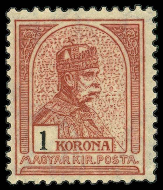 7778 og 81a image1904-1905, Franz Josep I Wearing Hungarian Crown, 1k brown red (Scott 81a), single, o.g., hinged, Fine to Very Fine.