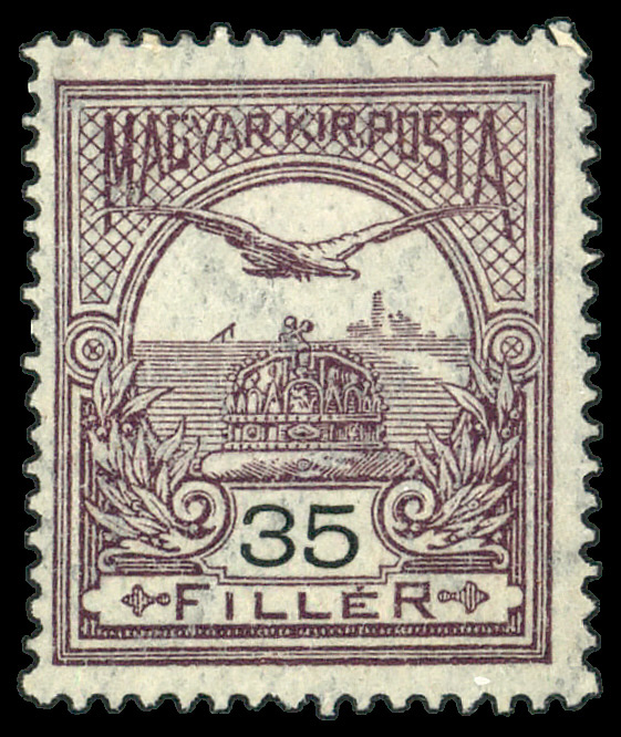 7779 og 95a image1913-1916, Turul and Crown of Saint Stephen, 35f red violet (Scott 95a), single, o.g., hinged, Fine to Very Fine.