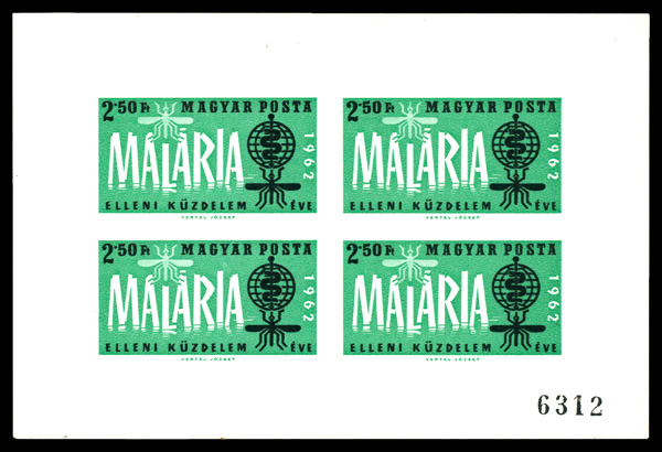 7785 nhbl 1461a image1962, Malaria Eradication, Imperf Souvenir sheet (Scott 1461a), imperf souvenir sheet of 4, o.g., never hinged, Fine to Very Fine.