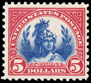 7096 nh 573 image1923, $5 America (Scott 573), o.g., never hinged, Fine to Very Fine.