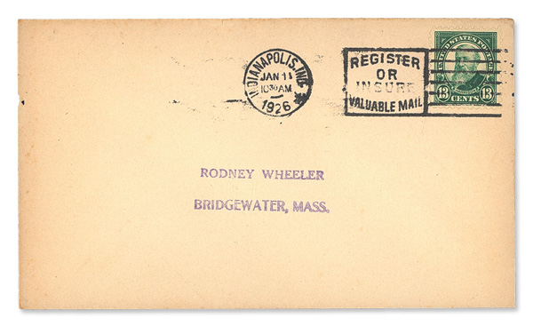 7103 cover 622 image1926, 13¢ Harrison (Scott 622), First Day Cover 'INDIANAPOLIS, IND/JAN 11/1926', Very Fine.