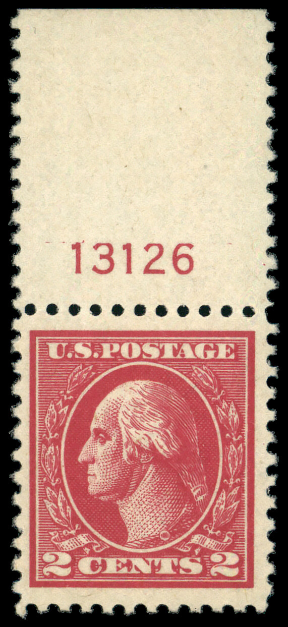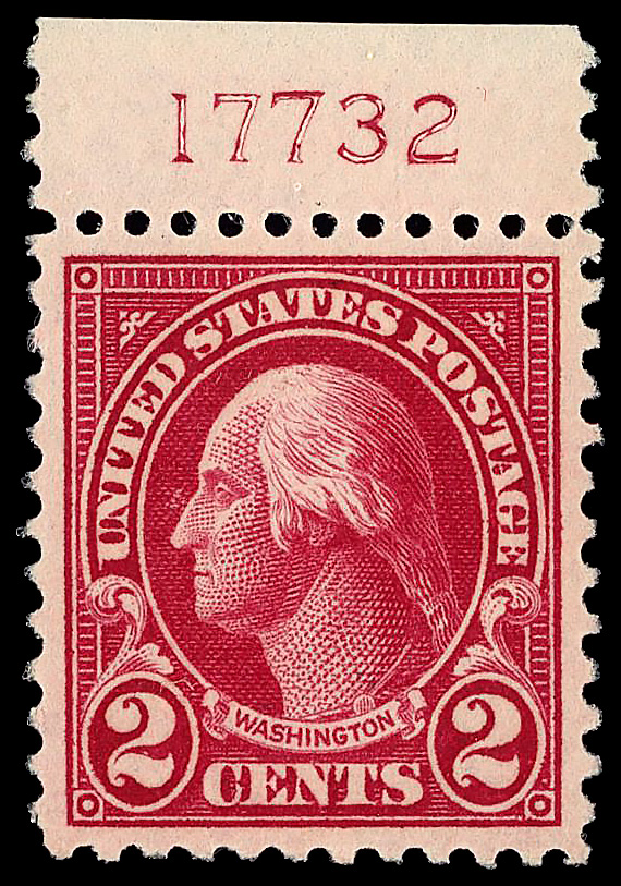 7081 nh 528 image1918, 2¢ carmine, type Va, offset printing (Scott 528), plate number single, o.g., never hinged, jumbo margins, Extremely Fine. (Image) Suggested Bid $100