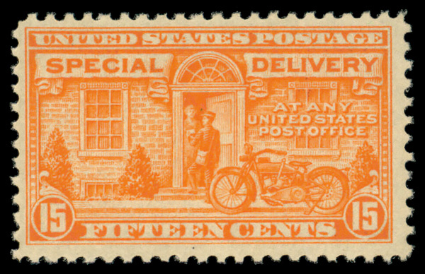 7232 nh E13 imageSpecial Delivery, 1925, 15¢ deep orange (Scott E13), o.g., never hinged, Fine to Very Fine.