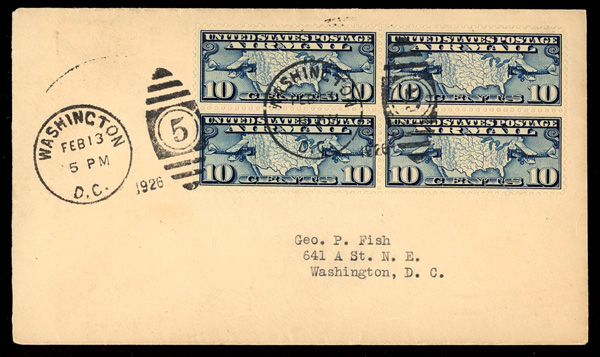 7205 cover C7 imageAirmail, 1926, 10¢ Map & Planes (Scott C7), First Day Cover, Very Fine.