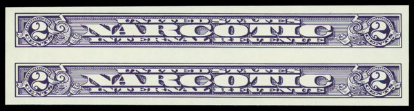 7273 nh RJA80a imageNarcotic Tax, 1963, 2¢ violet, imperf (Scott RJA80a), vertical pair, o.g., never hinged, Extremely Fine.