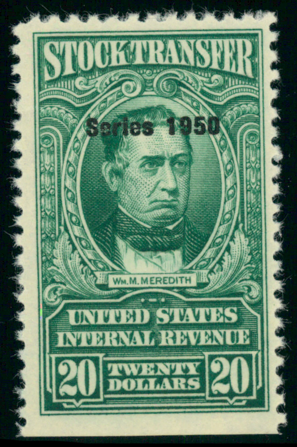 7266 ng RD329 imageStock Transfer, 1950, $20 Meredith (Scott RD329), unused without gum; straight edge at bottom, Very Fine.